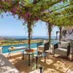 Set against breathtaking landscapes, the estate offers expansive views that stretch all the way to the Mediterranean Sea. Its beautifully landscaped grounds include a private pool, inviting residents to enjoy serene outdoor living while surrounded by nature’s beauty.