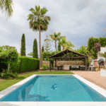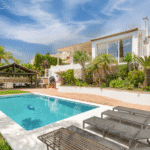 Outside, a beautifully landscaped garden offers shaded corners, a chill-out area, an outdoor kitchen with built-in barbecue, and an elegant private pool — the perfect setting for family gatherings, summer afternoons, or relaxing under the Mediterranean sun.