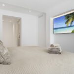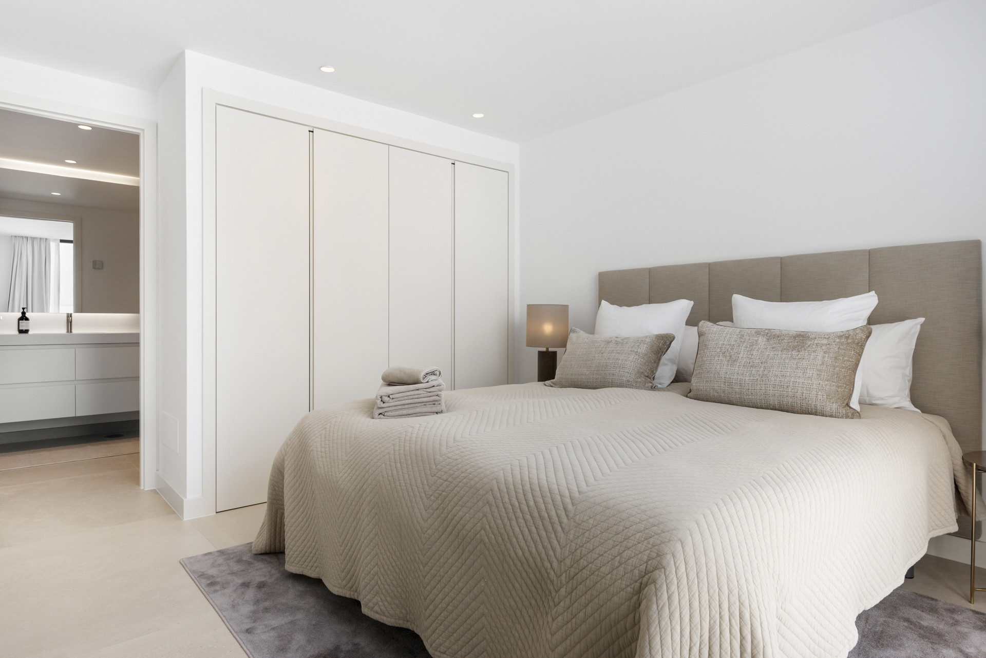 Two of the villa’s five en-suite bedrooms are located on this level, all featuring premium finishes and underfloor heating for added comfort throughout the home.