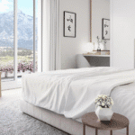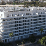 Designed to embrace natural light and panoramic views, the residences feature expansive terraces with sleek glass railings and floor-to-ceiling windows. The contemporary architecture, defined by clean lines and a striking white façade, creates a sense of modern elegance seamlessly connected with the outdoors.