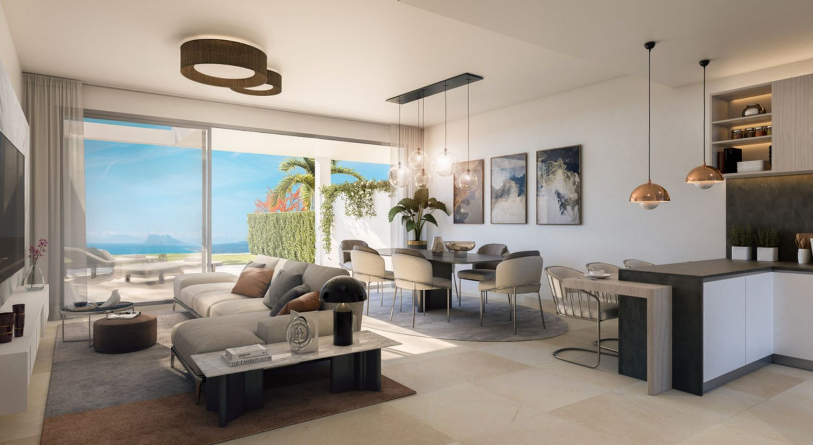 These modern townhouses feature a south-west orientation, designed to the highest construction standards. Enjoy spacious and luminous interiors, expansive gardens, generous terraces, and impressive solariums that provide breathtaking views of the sea and Gibraltar.