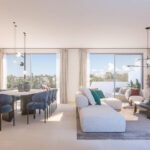 The living room, designed to prioritize well-being, offers both comfort and elegance with large windows that frame views of the Guadalmina golf course. This architectural feature ensures a spacious, luminous environment with ample possibilities for decoration, providing a serene space for leisure in one of the world's most privileged areas.