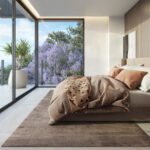 Large windows frame the panoramic views of the sea, mountains, and surrounding greenery, ushering natural light into every room and creating a seamless connection between indoor and outdoor spaces. Positioned for maximum morning sunlight, the eastward orientation allows you to start your day with scenic sunrises over Malaga’s coastline.