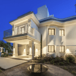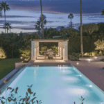Outdoors, landscaped gardens, mature palms, and manicured lawns frame a large swimming pool, multiple alfresco dining areas, and a sophisticated gazebo—ideal for serene living and elegant entertaining. Modern amenities such as lift access, underfloor heating, smart home automation, and A+ energy-rated solar panels ensure effortless year-round comfort.