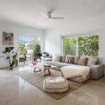 Stylish living and dining area opening onto a generous terrace with panoramic golf views