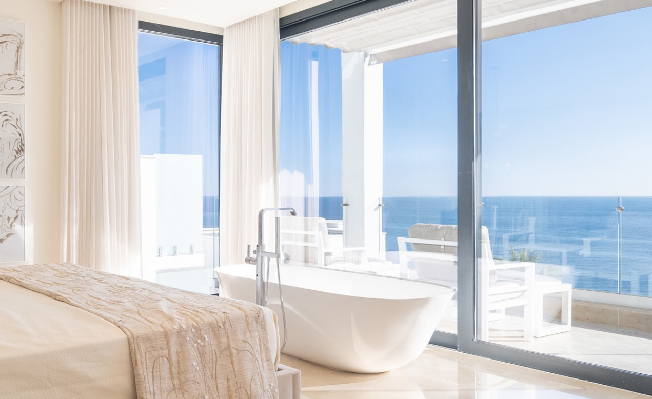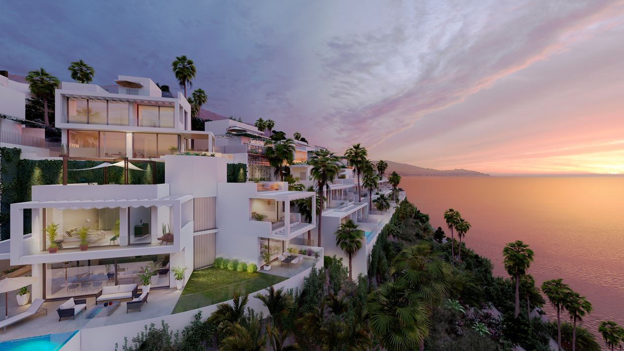 Perched high above the beach and conveniently close to all amenities, shops, and leisure centers, this exclusive complex features 15 luxury villas, a mere 45 minutes from Malaga International Airport. Offering a commanding presence high above the sea, these villas provide a 180º panoramic view of the coast, spanning for miles. Nestled among tropical vegetation, these residences resemble a grand vessel suspended over the blue sea, with avant-garde settings on expansive terraces.