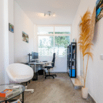 Wake up to the gentle glow of morning light in a spacious bedroom overlooking a lush, private garden in this Mediterranean-style villa that offers more than just a home—it offers a lifestyle. With three large bedrooms designed for comfort, a separate dressing room, and a quiet office ideal for remote work, every space is crafted for relaxation and inspiration. Sustainability is seamlessly integrated, thanks to over 20 solar panels, a battery storage system, and a heated pool that can be enjoyed year-round, all while keeping energy costs low and your carbon footprint small. A cosy covered terrace with a fireplace sets the stage for memorable evenings, while the modern Spanish-style kitchen with an inviting bar makes cooking a social experience. A charming three-step staircase leads to a unique living room layout, and behind the kitchen, a laundry room adds everyday convenience. The property includes a garage for one car and additional parking behind an automatic gate, plus a dog kennel tucked behind the garage. Begin your mornings on a second covered terrace at the front of the home, and enjoy the convenience of having the beach, restaurants, and a supermarket just a short walk away—blending tranquil living with easy access to everyday amenities.