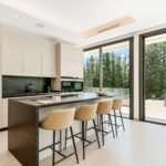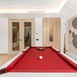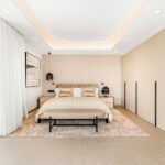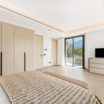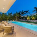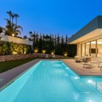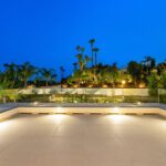 A mix of covered and uncovered terraces allows residents to fully appreciate the surroundings, whether enjoying a quiet morning or hosting an evening gathering. The private garden, a lush oasis, enhances the property’s exterior and leads to an elegant L-shaped swimming pool that glows beautifully at night.