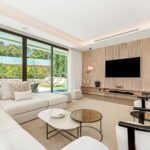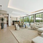 This stunning property spans three floors and covers 770 square meters of built area on a 1000 square meter plot, situated in the prestigious La Cerquilla area of Nueva Andalucia, Marbella.