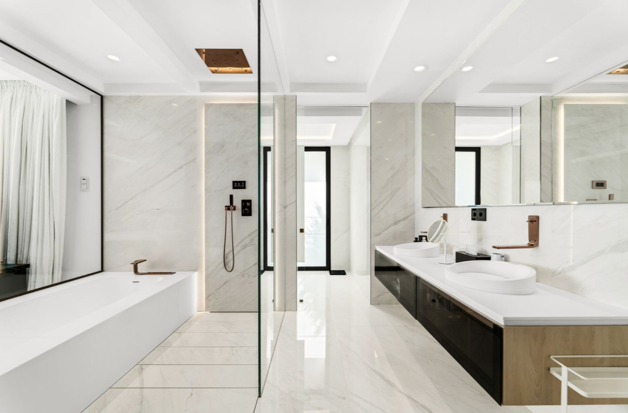 Diese besondere Wohnung in Block 1 bietet ein außergewöhnliches Maß an Exklusivität mit nur drei Residenzen im Gebäude – eine pro Etage. Die Mittelflur-Position bietet eine ideale Balance von Raum, Licht und ungehinderten Meerblick, während ihr Layout deutlich größer ist als andere vergleichbare Einheiten innerhalb des Komplexes. Das Anwesen verfügt über vier geräumige Schlafzimmer mit eigenem Bad, alle auf einer einzigen Ebene angeordnet und verfügt über vier private Parkplätze. Die Fußbodenheizung erstreckt sich über das ganze Haus und sorgt für maximalen Komfort in jeder Jahreszeit.