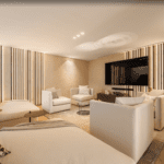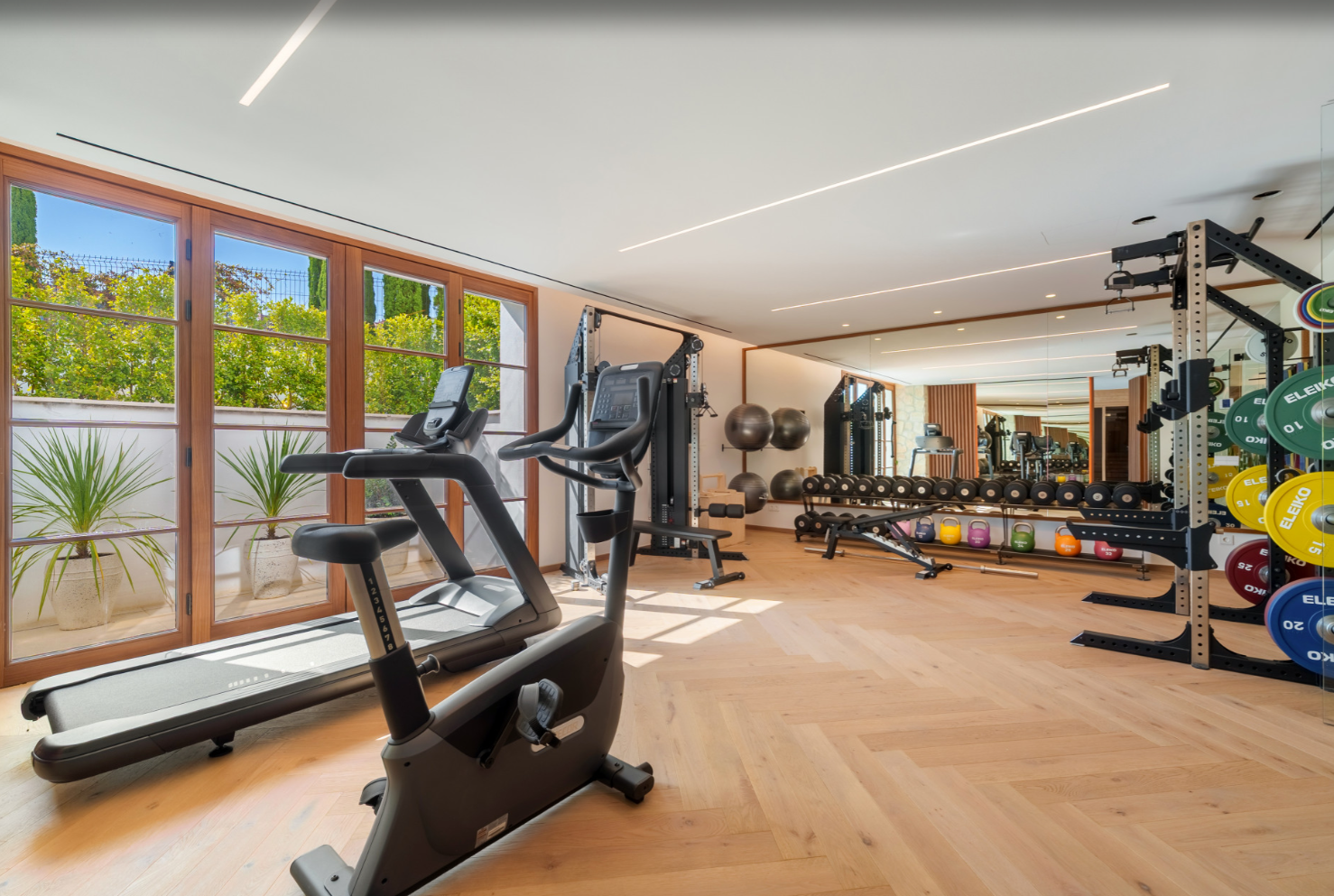 Built with sustainability in mind, the home boasts an Energy Efficiency Certificate A, thanks to its eco-conscious design and smart home integration. It is equipped with Apple HomeKit-compatible automation and a Lutron system, as well as underfloor heating and individually controlled A/C in every room.