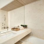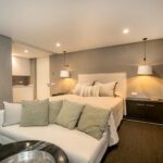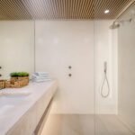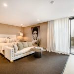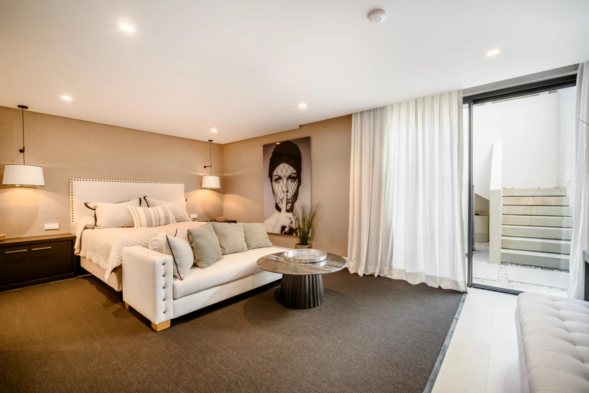 Inside, the villa showcases modern luxury with its thoughtfully designed interiors that strike a balance between sophistication and warmth. The high-end kitchen, equipped with top-of-the-line appliances, is a dream for culinary enthusiasts, combining elegance with practicality for both gourmet and everyday cooking. The lower level also features a fully equipped apartment for staff or guests, ensuring privacy and convenience.