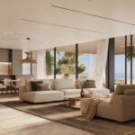 These superb homes feature striking architecture and meticulously designed interiors, nestled within a secure gated complex at the highest point of the urbanization. Surrounded by tranquility and embraced by nature, the villas offer unparalleled panoramic views of the bay of Marbella and the Mediterranean Sea, all while being conveniently located just a ten-minute drive from Puerto Banus. The villas are built with top-quality materials, incorporating natural elements and color schemes throughout.