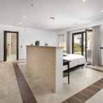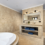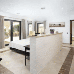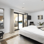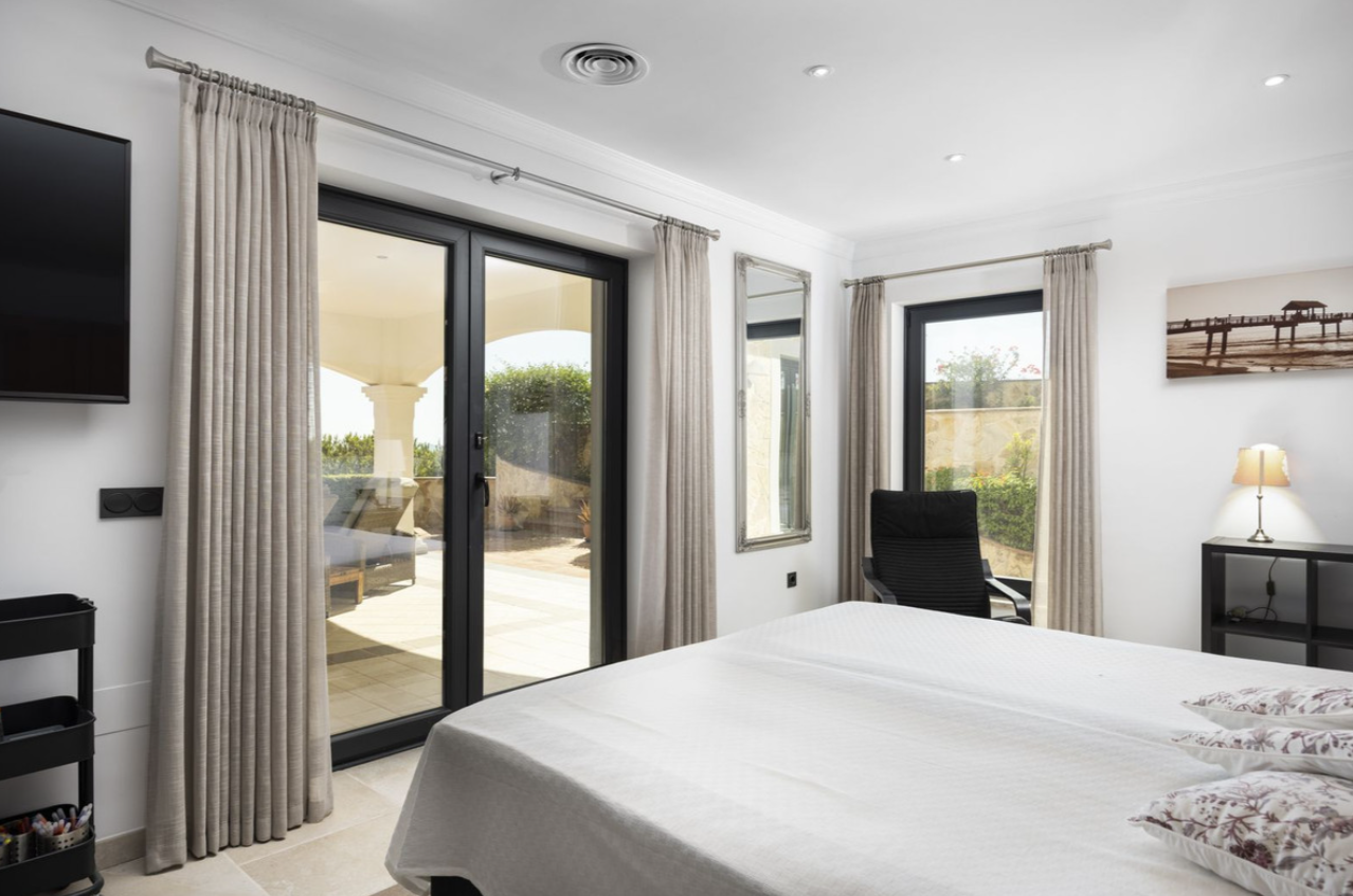 The master suite on this level includes a wraparound terrace, a luxurious walk-in wardrobe with central island, and an elegant en-suite bathroom featuring a private balcony—perfect for relaxing in a hot bath while watching the sun set over the Andalusian hills.