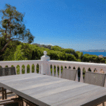 The villa comprises six bedrooms and four bathrooms, complemented by a spacious, luminous living room with a cozy fireplace and large windows perfectly framing the sea views. The recently renovated, fully equipped kitchen opens directly onto a terrace where the Mediterranean takes center stage. Additional features include a gym area, wine cellar, and multiple sun-soaked terraces that can adapt to any lifestyle or family needs.