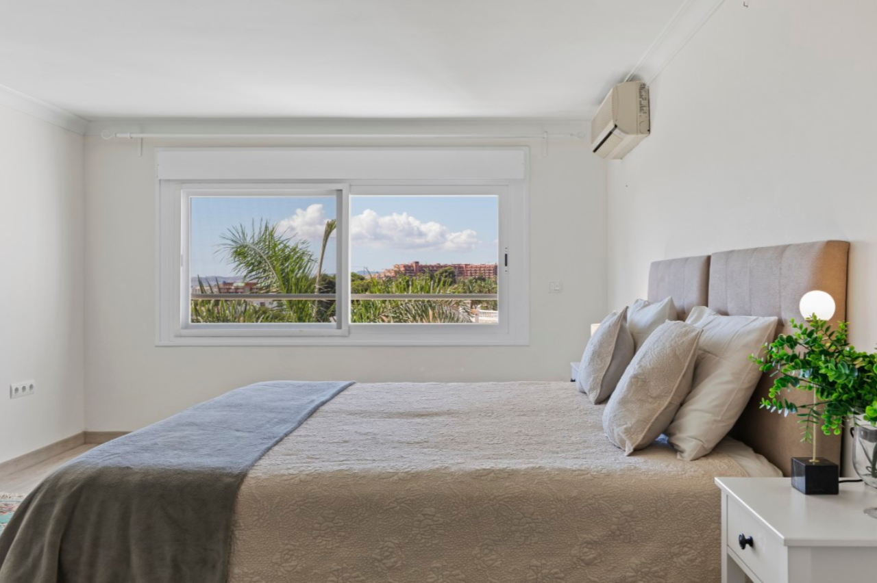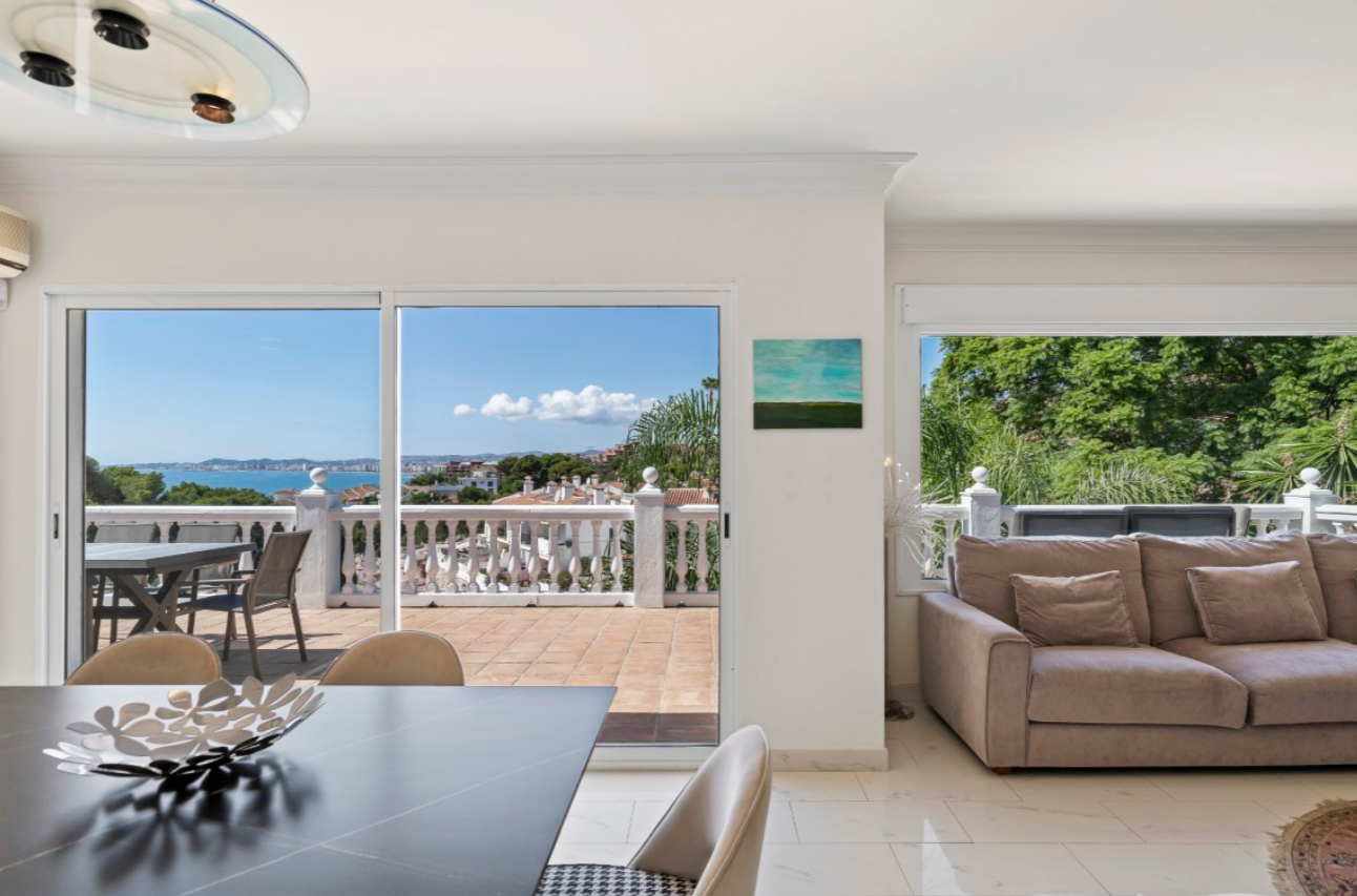 Just a five-minute stroll from the sea, this Torremuelle villa in Benalmádena offers breathtaking, uninterrupted views of the Mediterranean. More than just a home, it’s an invitation to live enveloped in light, tranquility, and nature.