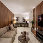 The main level offers a spacious living and dining area that flows seamlessly onto a sun-drenched terrace, ideal for indoor-outdoor living. A state-of-the-art open kitchen caters to both everyday living and entertaining, while the lower floor includes a cozy TV lounge for relaxed evenings.