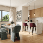 The sleek, low-density architecture integrates beautifully into the natural surroundings. Bright interiors, expansive floor-to-ceiling windows, and open-concept living areas invite the Mediterranean light to flood every corner. Elegant Italian-style kitchens are fully fitted with premium finishes and high-end appliances, flowing seamlessly into spacious lounges and outdoor terraces.