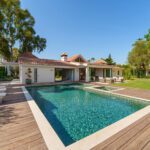 Step outside to a beautifully landscaped garden designed for both relaxation and entertaining. A large private pool sits at the center, framed by an elegant wooden deck with sun loungers and parasols. Multiple outdoor lounges, a covered summer kitchen with built-in BBQ, and a stylish pergola offer the ultimate al fresco lifestyle—perfect for enjoying Marbella’s sun-filled days and balmy evenings.