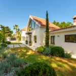 Discover a refined take on modern Mediterranean living with this outstanding single-level villa, just moments from the glamour of Puerto Banús. Privately positioned on a generous plot, the residence offers seamless indoor-outdoor flow, five spacious bedrooms, and striking architectural details—most notably a dramatic double-height entrance hall crowned by a bold geometric roofline.