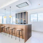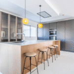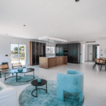 The heart of the home is the open-plan designer kitchen, featuring high-end appliances, premium finishes, and a seamless flow into the spacious living and dining areas. Large windows flood the interior with natural light and frame spectacular views of the surrounding landscape, creating a bright and inviting atmosphere throughout.