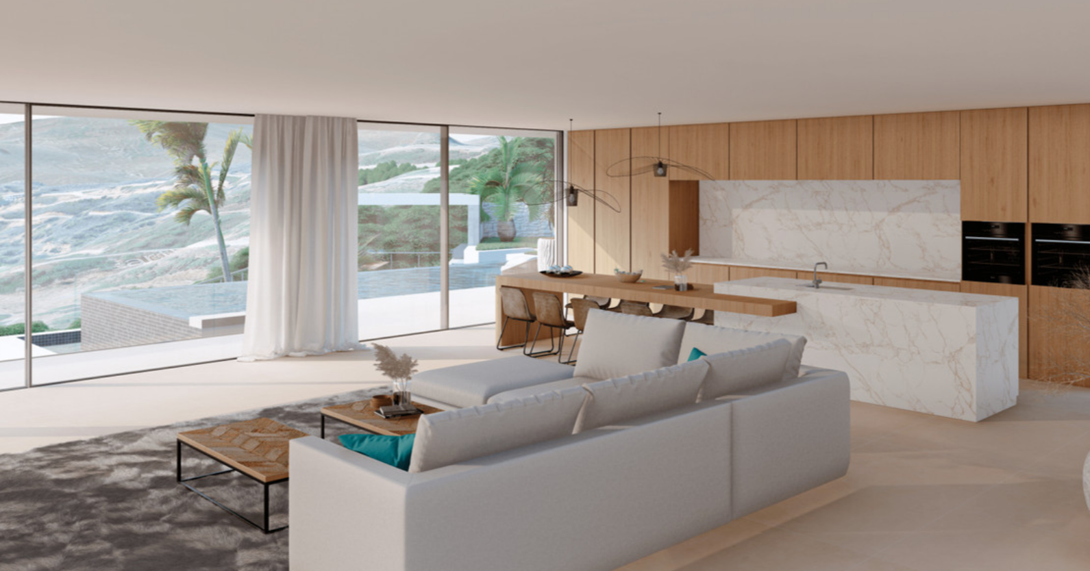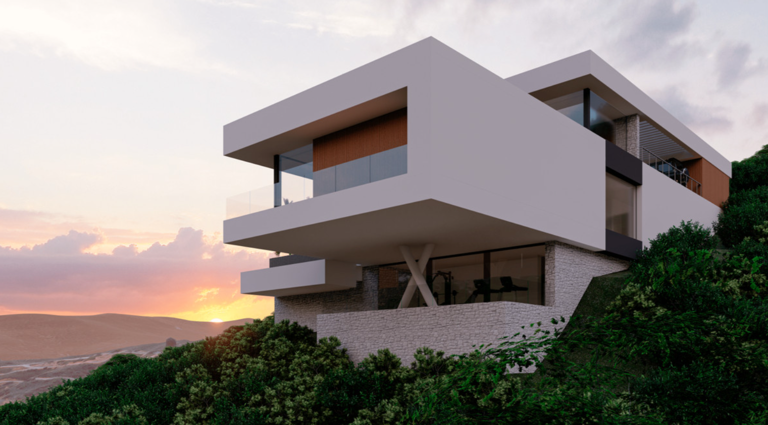 In der natürlichen Hügellandschaft von Montemayor gelegen, bietet diese beeindruckende moderne Villa eine privilegierte Hochlage mit atemberaubendem Panoramablick über die Küste und die umliegende Natur.