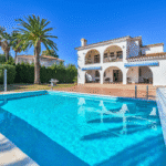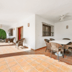This beautifully updated Andalusian villa in Atalaya Alta offers spacious living across two levels, set on a large, tranquil plot of over 1,000 m². The ground floor features two double bedrooms, a bathroom, a separate dining room, a fully equipped kitchen, and a bright lounge with access to a generous covered terrace that leads directly to the lush garden and impressive 12m x 6m heated pool. Upstairs, you'll find three additional double bedrooms and two bathrooms, including a master with en-suite and private terrace. One of the upper bedrooms enjoys its own large covered terrace with sweeping views over the landscaped garden, pool, and even a glimpse of the sea. All bedrooms feature air conditioning, Kommerling double-glazed windows and doors, and electric shutters. The garden is designed for both relaxation and entertainment, complete with a built-in BBQ, table tennis, basketball hoop, mature palm trees, and a solar-heated outdoor shower. The heated pool includes a cascading water feature, electric cover, and LED night lighting for a dramatic evening ambiance. Additional features include a private garage, off-street parking for two or more cars, and a sophisticated video alarm system for enhanced security. This villa is ideal as a family home or luxurious holiday retreat, combining classic charm with modern convenience.
