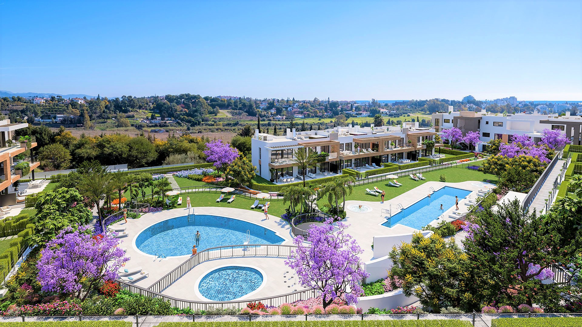 New project of luxury 2 and 3 bedroom apartments and penthouses in the last plot in prestigious Atalaya, on the junction of the golden triangle Marbella – Benahavis – Estepona, in a gated exclusive community full of amenities with gym, heated pool and jacuzzis, lush gardens and yoga lake, in walking distance to facilities, and within a short drive to the beach, Puerto Banús and Marbella.