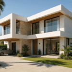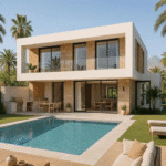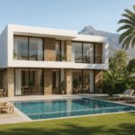 The villa’s modern flat-roof design is complemented by glass balustrades, and elegant stone and wood finishes, emphasizing clean lines and sophisticated detailing. As an off-plan property, it offers a unique opportunity to personalize your future home before construction, allowing you to select finishes and layouts that reflect your individual style.