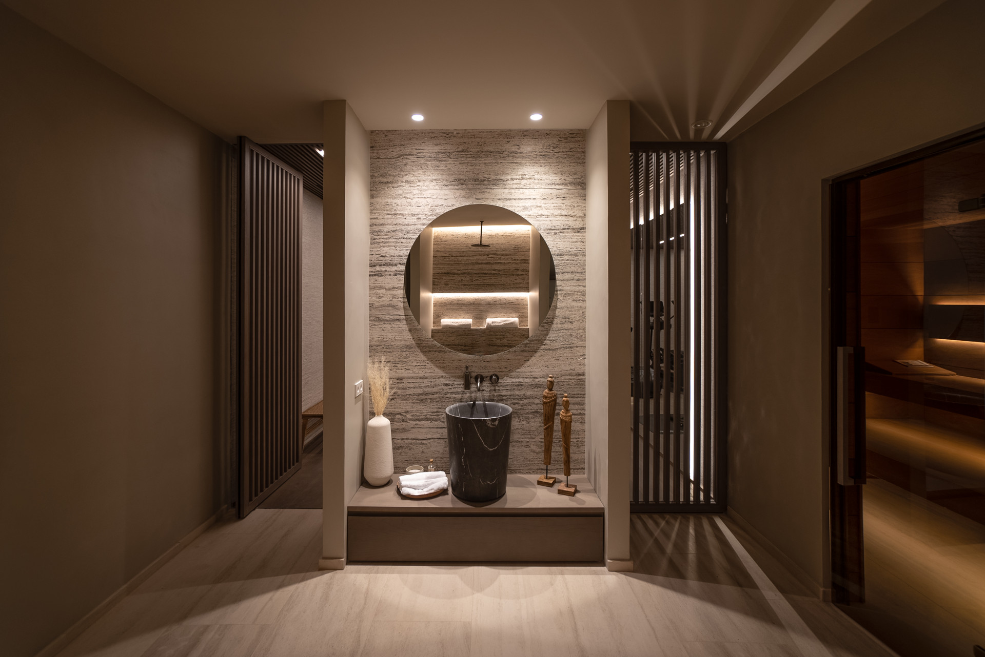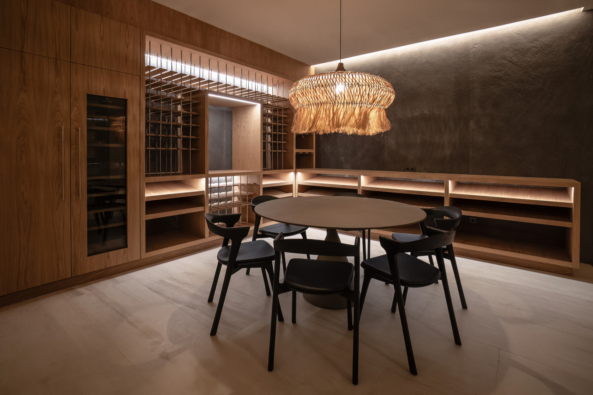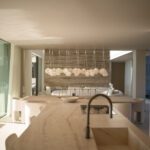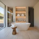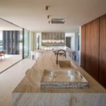 Crafted with a focus on sustainability, the home features renewable energy systems and is built with premium natural materials, including fine woods and carefully selected stone. Rich textures from marble, timber, and artisanal finishes create a warm, contemporary atmosphere.