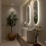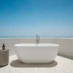 Two en-suite bedrooms are located on this level, including the impressive master suite—designed as a private retreat with its own terrace. The suite includes a walk-in closet, makeup vanity, spa-style bathroom with double sink, and a rain shower with spectacular sea views. An outdoor bathtub offers a luxurious open-air soak beneath the sky.