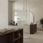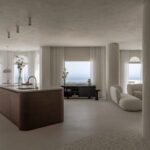 Inside, three spacious en-suite bedrooms, minimalist interiors, and soft, neutral tones create a serene atmosphere, while flawless finishes reflect a refined aesthetic. The main floor flows effortlessly—from the fully equipped kitchen with central island and dedicated wine display, to the sea-view dining area, elegant living space, and sun-drenched terrace ideal for al fresco dining. Additional features include a guest WC and a well-appointed laundry room.