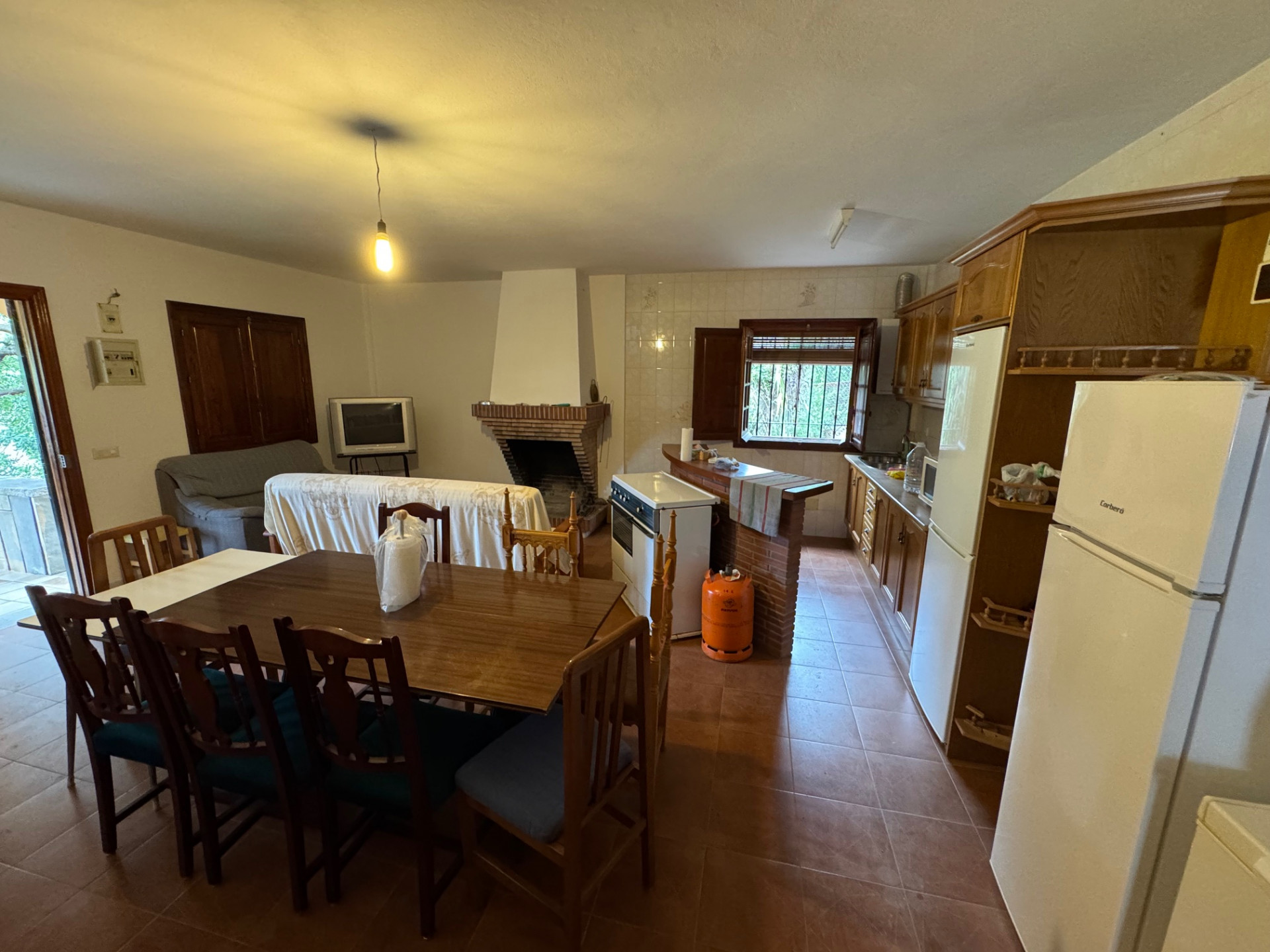 The main house, full of character and potential, awaits renovation to transform it into your dream retreat. The ground floor features a cozy living area, kitchen, guest toilet, and a double garage. A covered terrace leads out to the pool area and terraced garden below—ideal for enjoying the outdoor lifestyle.