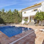 The layout is ideal for modernisation and reconfiguration, with the main level featuring a large entrance hallway, a bright living and dining area with fireplace, a guest toilet, and a partially fitted kitchen. Direct access leads to both covered and open terraces, a private garden, and a swimming pool—offering strong rental and resale appeal.