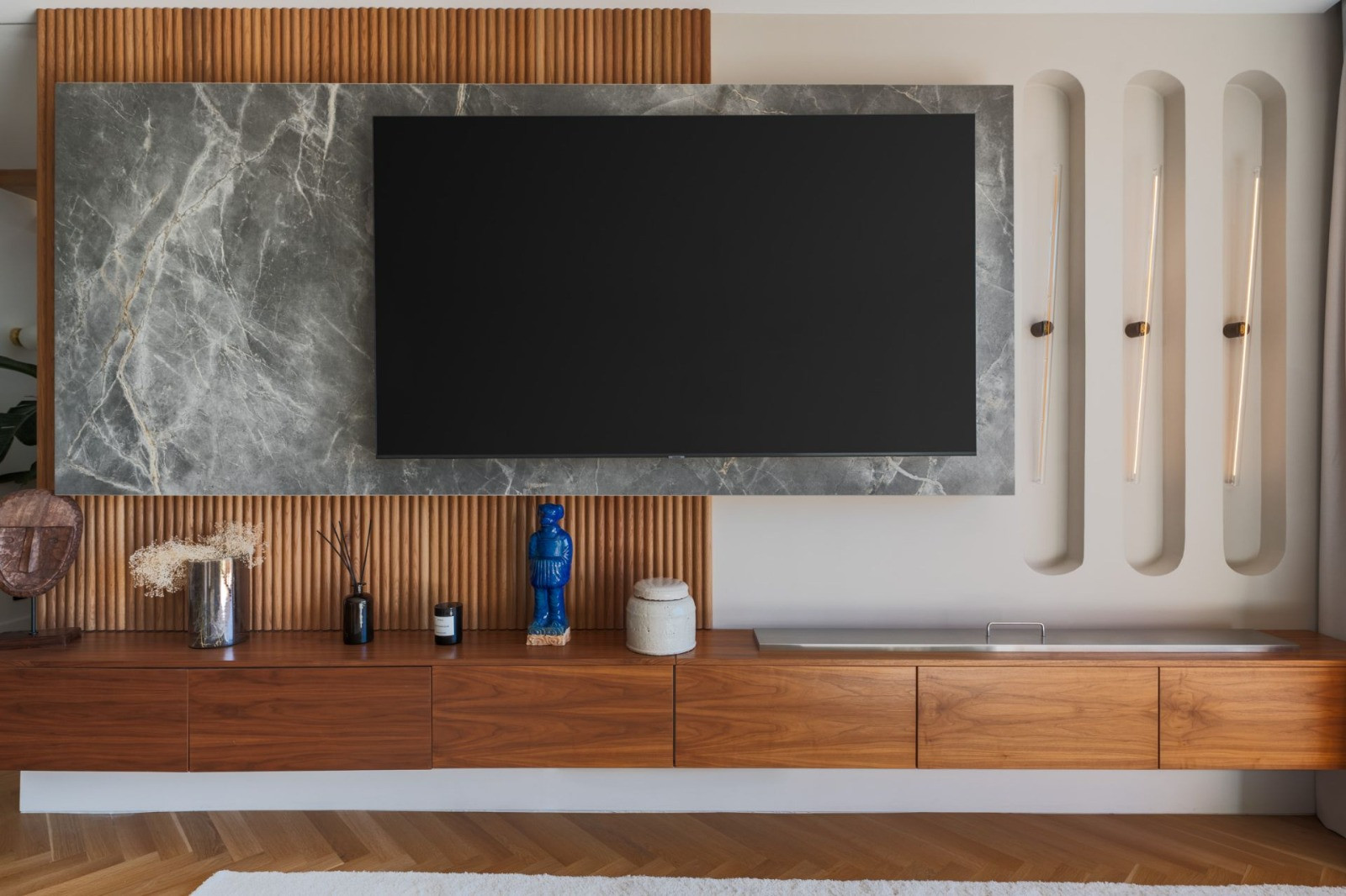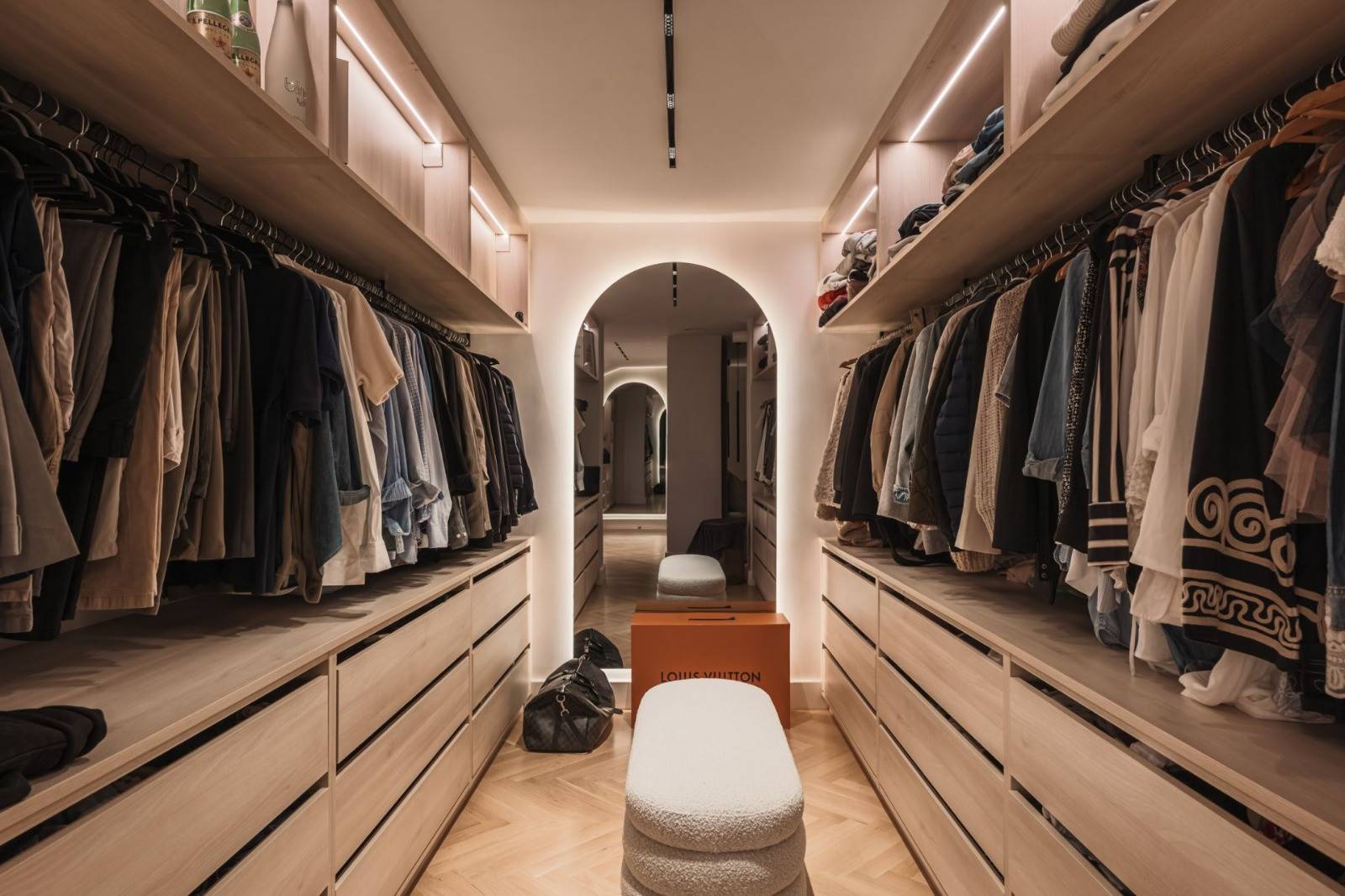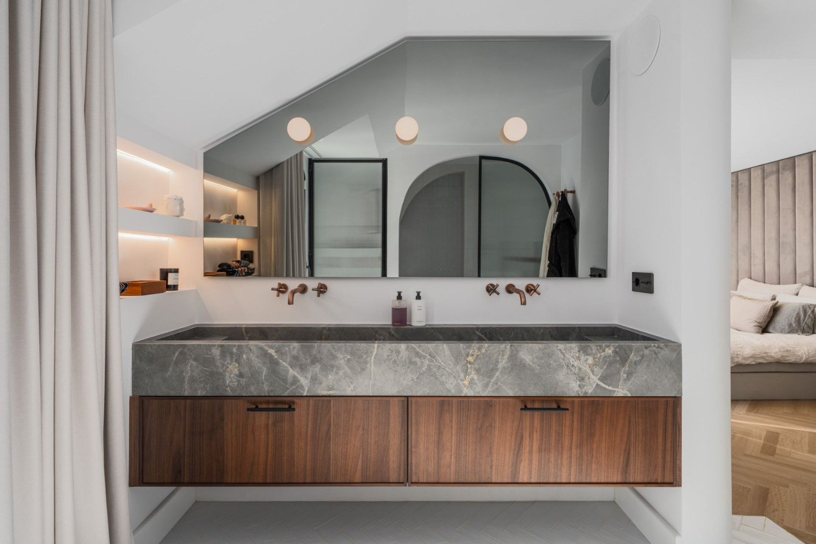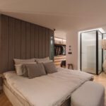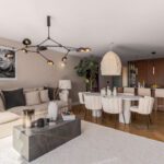 Throughout, refined details such as chevron-patterned wood flooring and full-height interior doors create a harmonious sense of scale and sophistication. Furnishings by premium brands including Bycrea and Zoco Home bring a warm, contemporary style to every room.