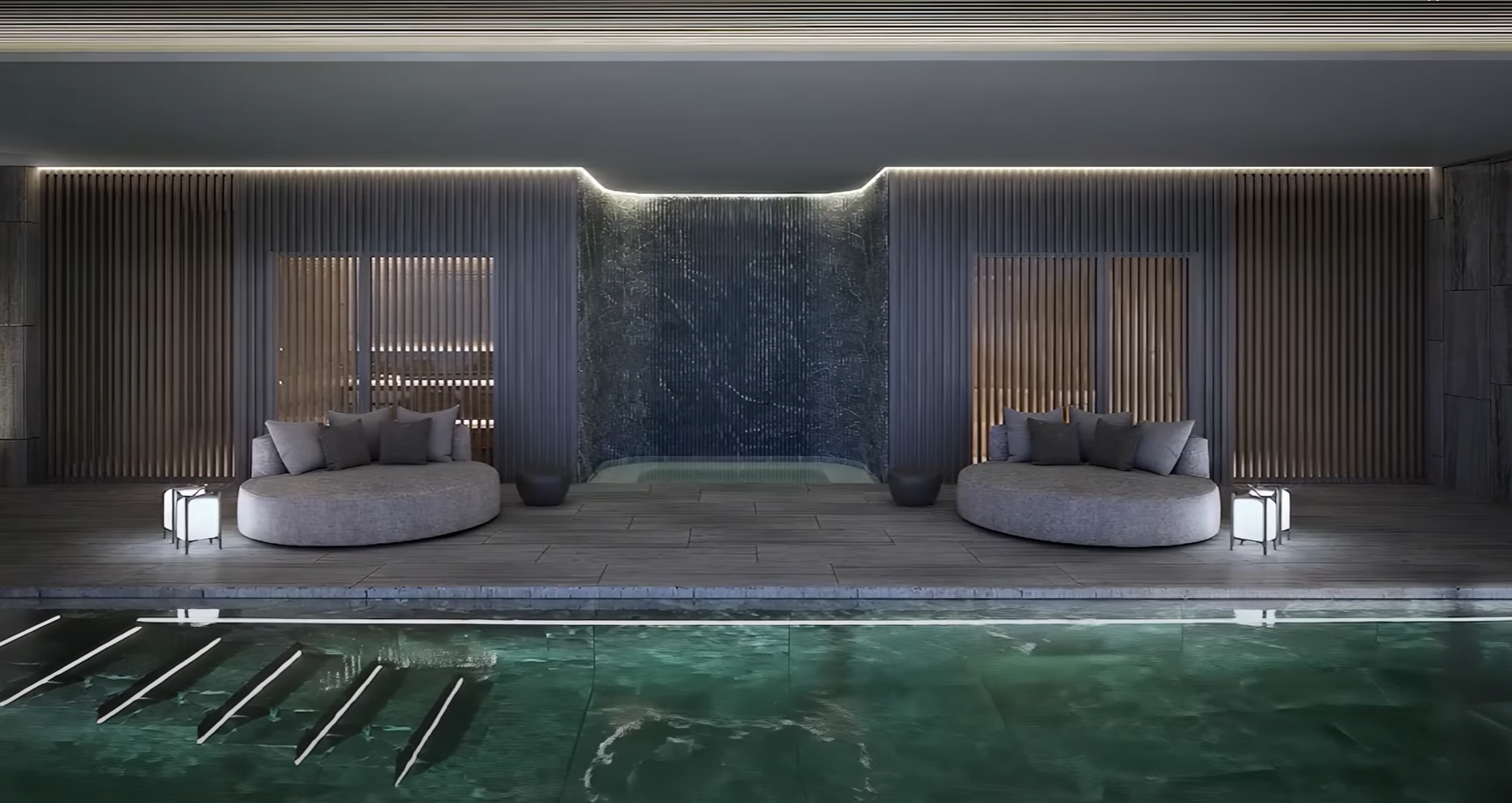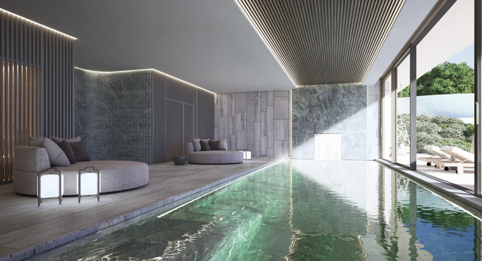 The property extends across a plot of 4,786.35 m² with a total built area of 2,482.70 m². It offers seven bedrooms, eight bathrooms, two guest toilets and four covered parking spaces. Comfort and wellbeing are at the core of its design, with a spa, massage room, indoor and outdoor pools, a wine cellar, home office and private lift.
