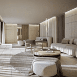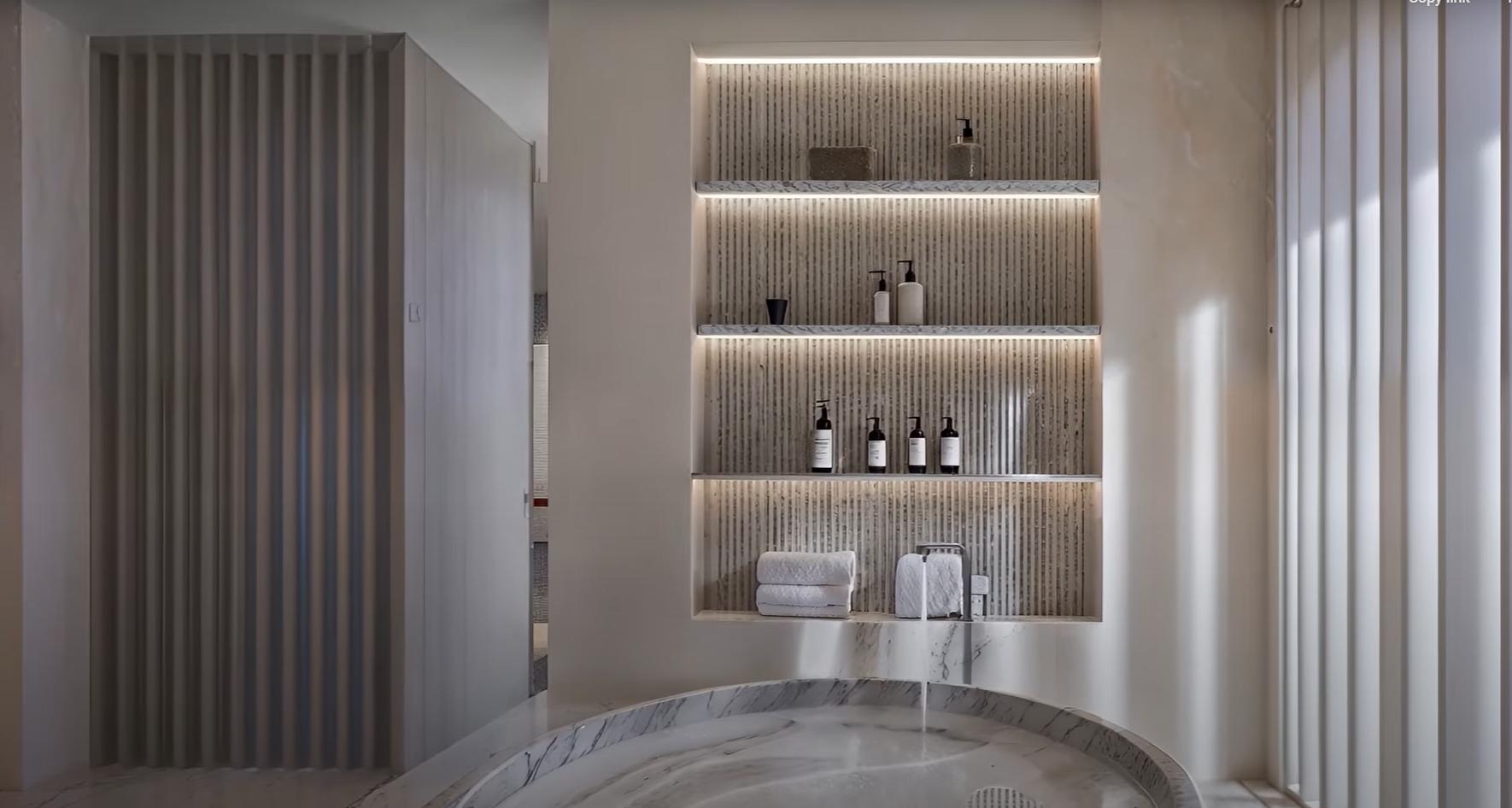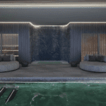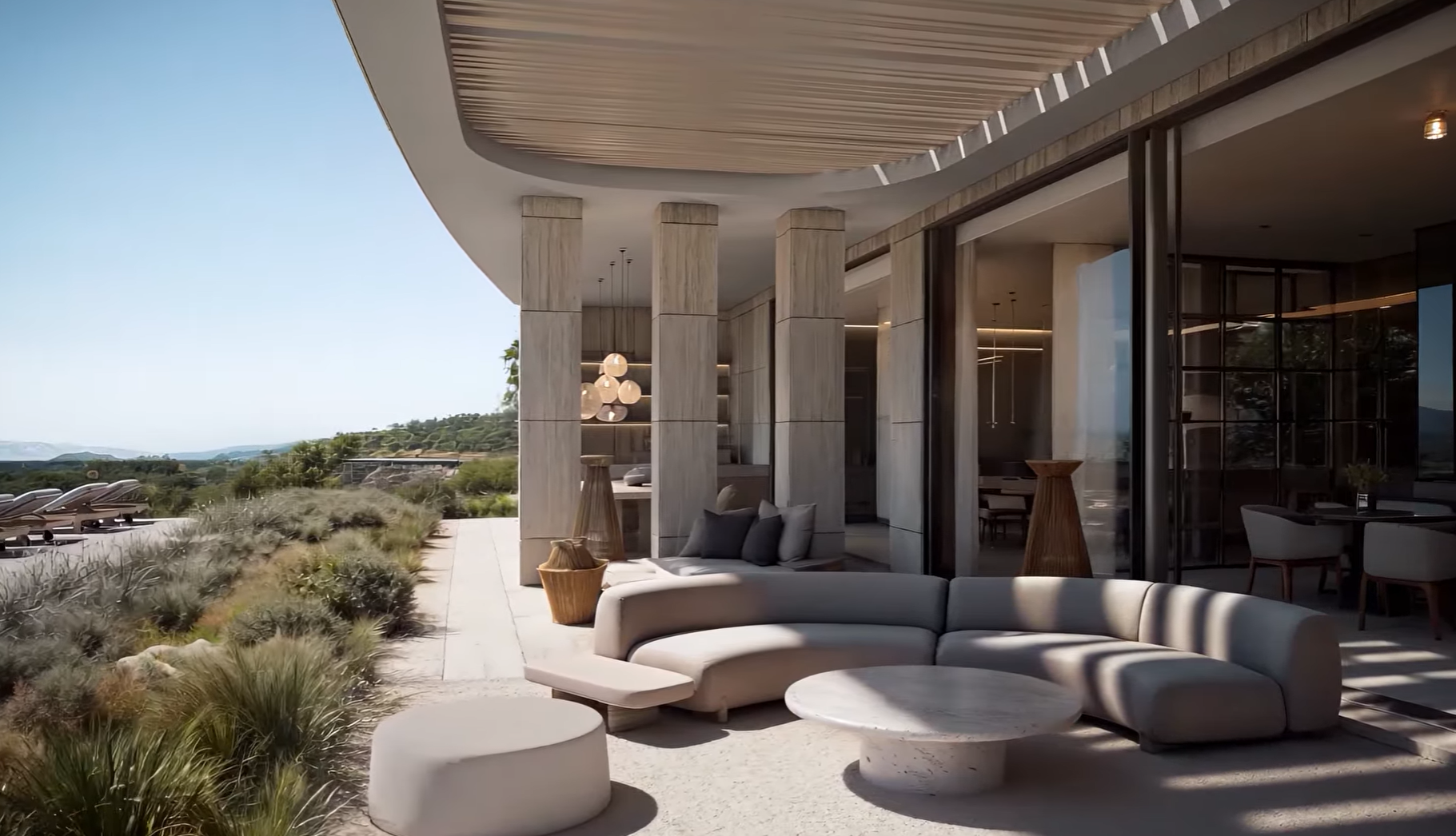 The organic flow of the design is defined by the curve: not as decoration, but as a natural outcome of the home’s adaptation to the terrain. From the swimming pool to the atrium and courtyards, the circular language creates a coherent, fluid architectural identity that celebrates harmony between form and place.
