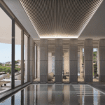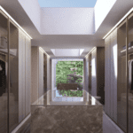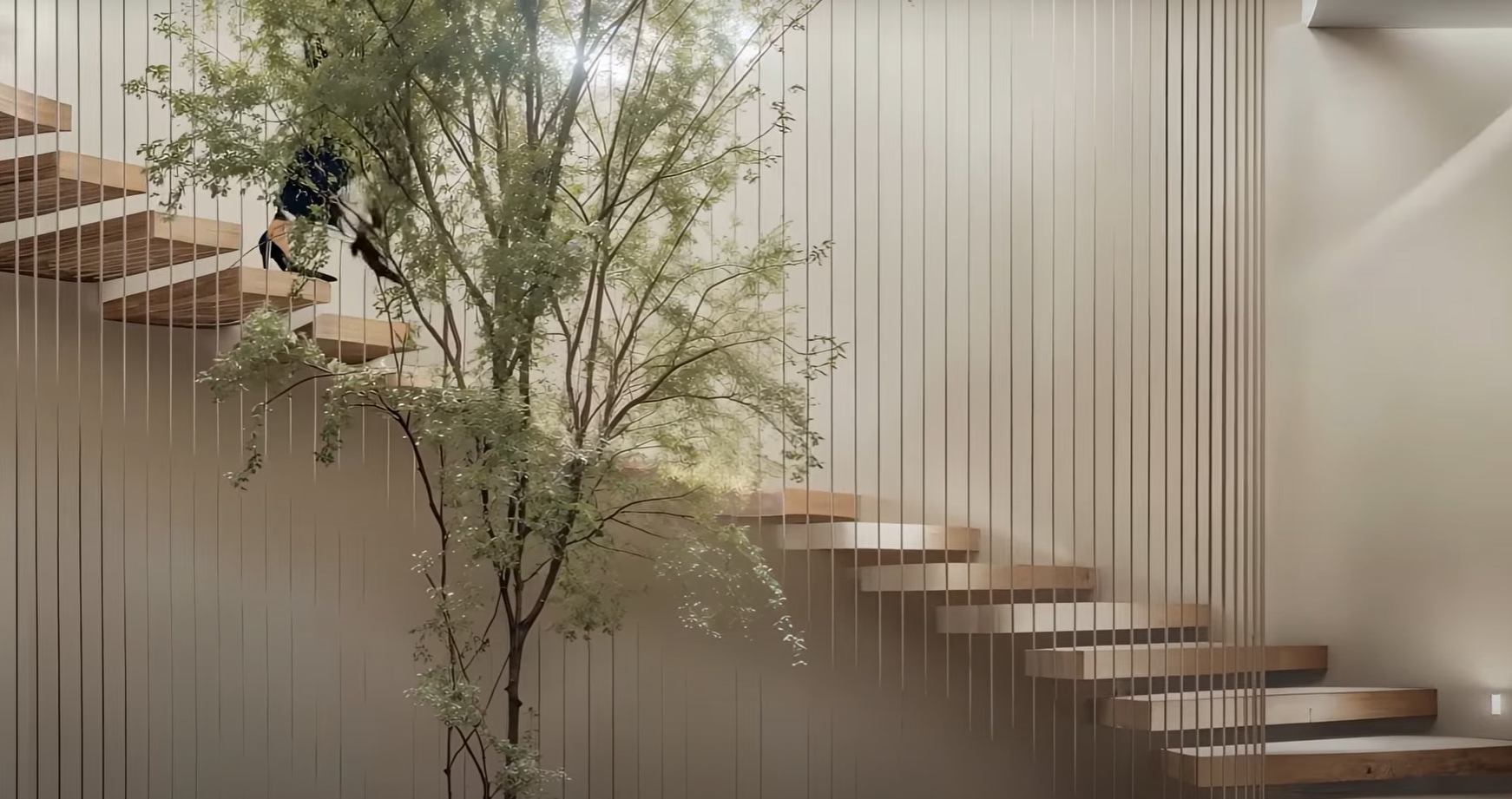 The house is also a profound reflection on light. Carefully oriented to capture the movement of the sun, it creates unique atmospheres throughout the day. A west-facing courtyard embraces the golden glow of the afternoon, reflecting it in a serene water feature that multiplies warmth and beauty. Nothing is accidental—each detail stems from a thoughtful analysis of the environment.