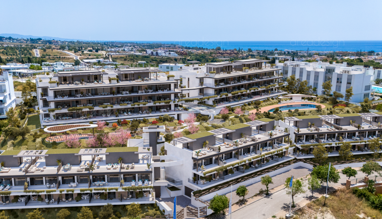 The penthouse features a spacious southwest-facing terrace, sun-drenched interiors, and floor-to-ceiling windows framing spectacular views of the Mediterranean Sea and Sierra Bermeja mountains. Its open-plan design and premium finishes create a perfect blend of elegance, comfort, and modern living.