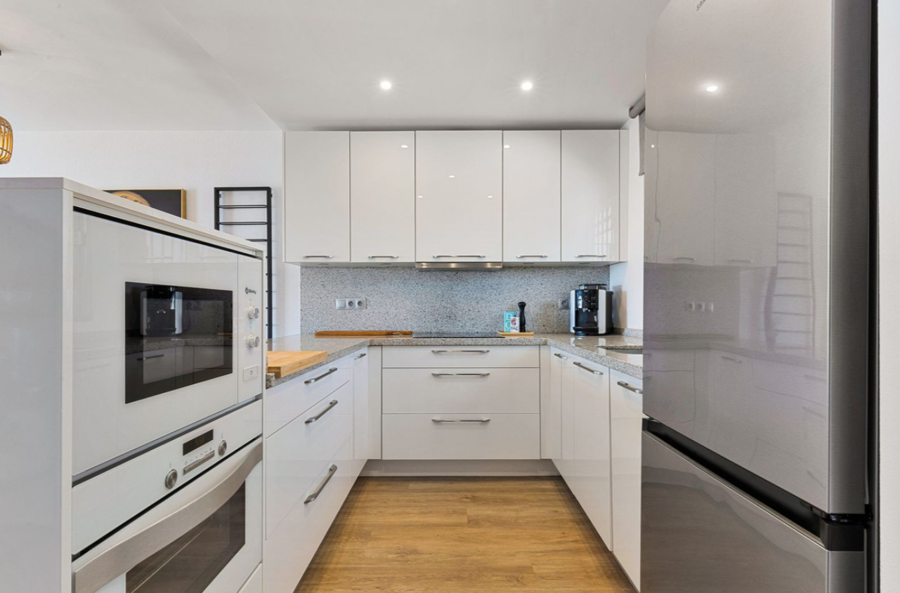 Meticulously maintained, this bright apartment offers 2 spacious bedrooms, 1 bathroom, and a fully equipped open-plan kitchen that flows effortlessly into the inviting living area. The living room opens onto a private terrace, perfect for enjoying breathtaking sea views.