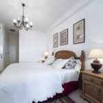 The property includes a living and dining area, a fully equipped kitchen, a spacious master bedroom with an en-suite bathroom, and a guest bedroom with an additional bathroom.