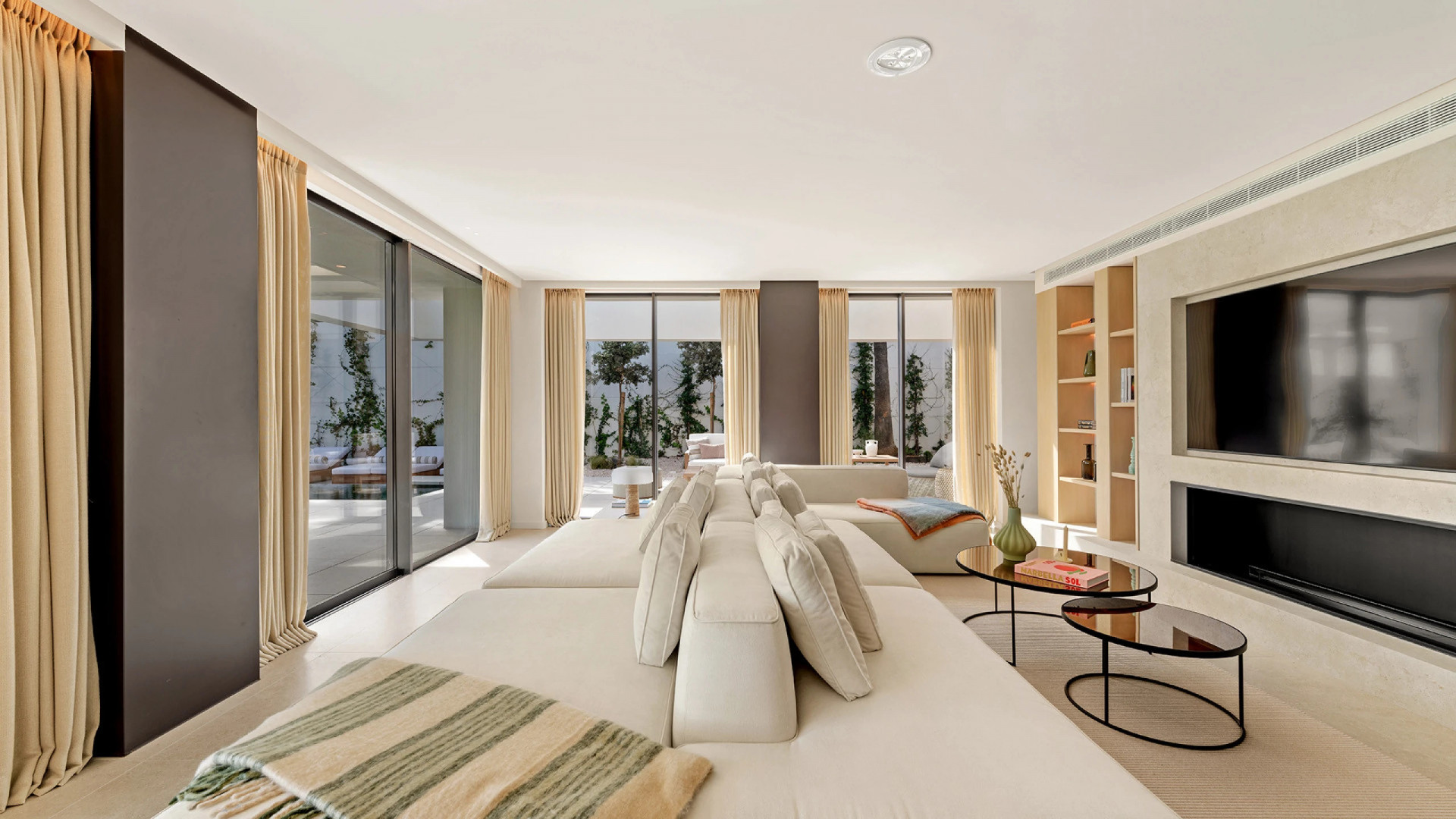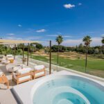 This exceptional design villa, positioned front-line to the golf course, offers the perfect blend of entertainment and luxury living. As you enter, you are greeted by a sleek, modern living space with an open-plan kitchen that seamlessly connects to the dining and living areas. Large floor-to-ceiling glass doors provide stunning views over the Los Naranjos Golf Course.