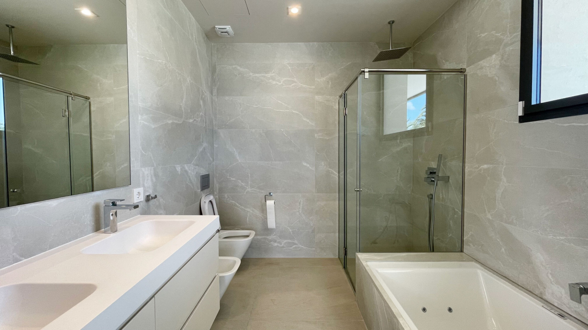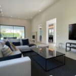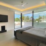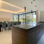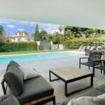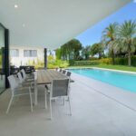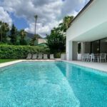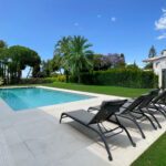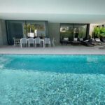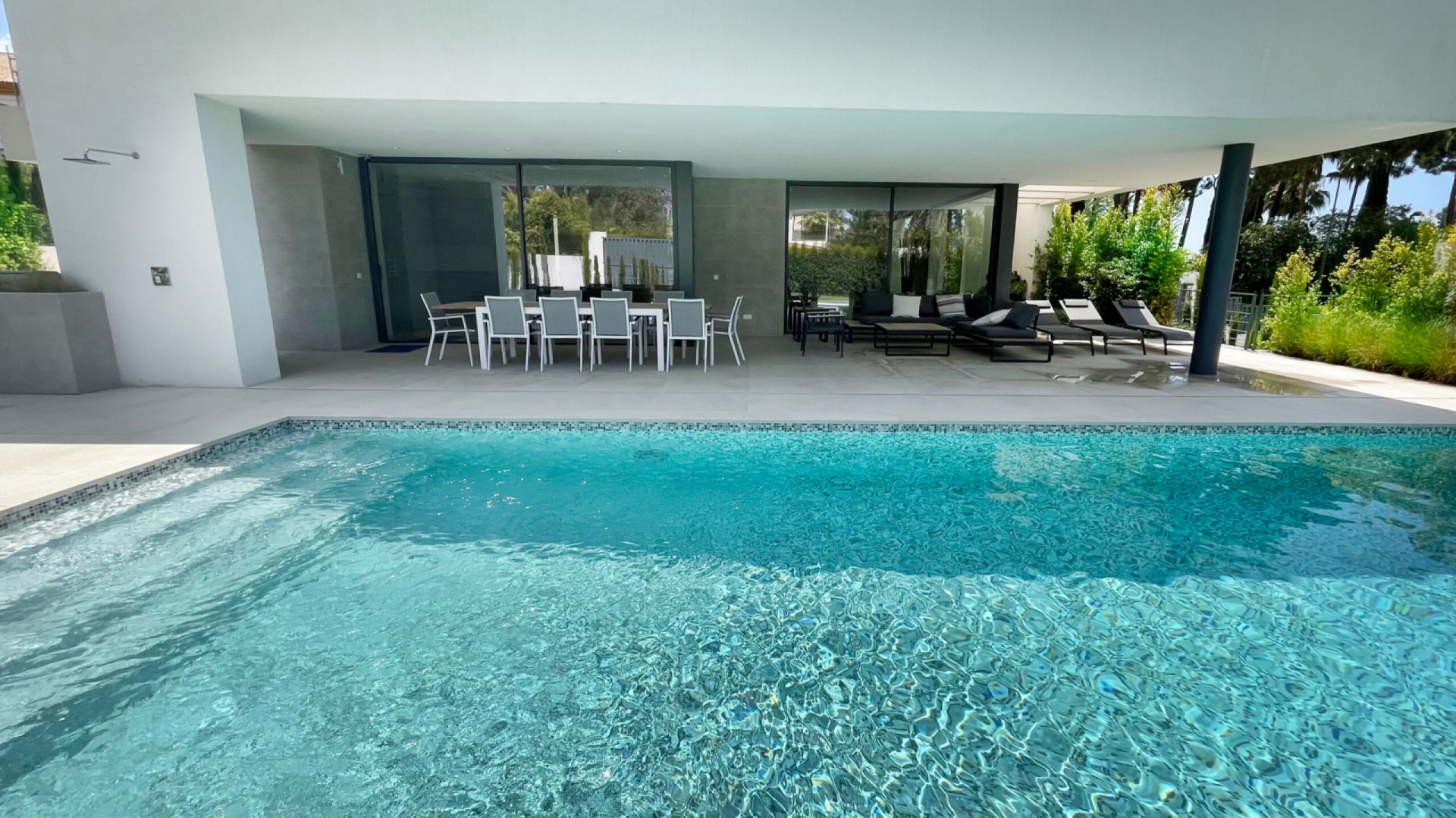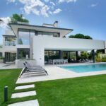Exquisite modern villa for sale in the prestigious heart of Marbella's Golden Mile, located in Nagueles. This exceptional property features 5 spacious bedrooms and 5.5 luxurious bathrooms, spread across three levels, all accessible via a sophisticated elevator. The villa includes a fully finished basement with a large garage, a dedicated gym, and a state-of-the-art home cinema room. Outside, you'll find a private pool and lush garden with a built-in barbecue area, easily accessible from the living room for seamless indoor-outdoor living.
