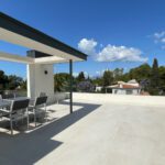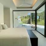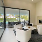 Upon entering, you're greeted by a striking entrance hall that leads into the elegant dining area, seamlessly connected to a fully equipped open-plan kitchen. The expansive living room is thoughtfully divided into two areas: a cozy TV zone and a warm fireplace corner, both offering ample space for relaxation. Each bedroom is designed with floor-to-ceiling windows, allowing natural light to flood the rooms and offering breathtaking views and stunning sunsets at every turn.