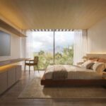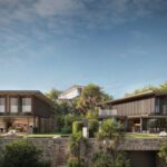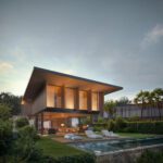 The interior is thoughtfully designed, combining elegance with practicality. The open-plan layout connects the kitchen, living, and dining areas, all highlighted by floor-to-ceiling glass doors that flood the space with natural light and provide direct access to the outdoor spaces. The upper floor features a luxurious master suite with a walk-in wardrobe and en-suite bathroom, along with comfortable guest bedrooms designed for privacy and comfort. The lower level includes a range of amenities such as a large garage, an entertainment room, a home office, and a cutting-edge spa and gym, catering to every need.
