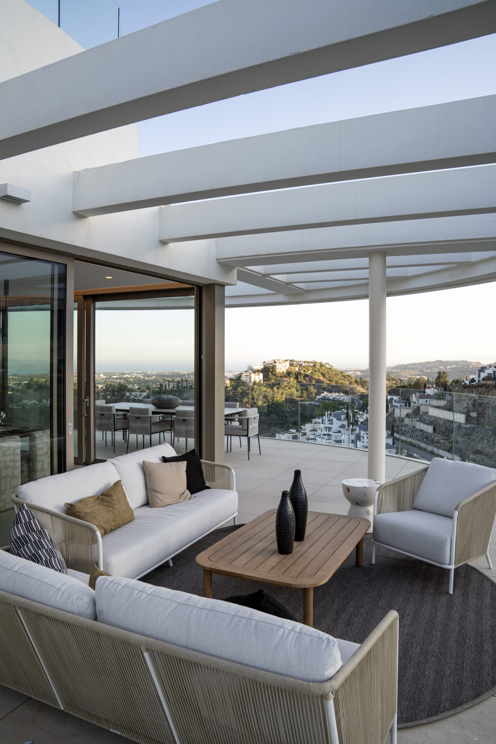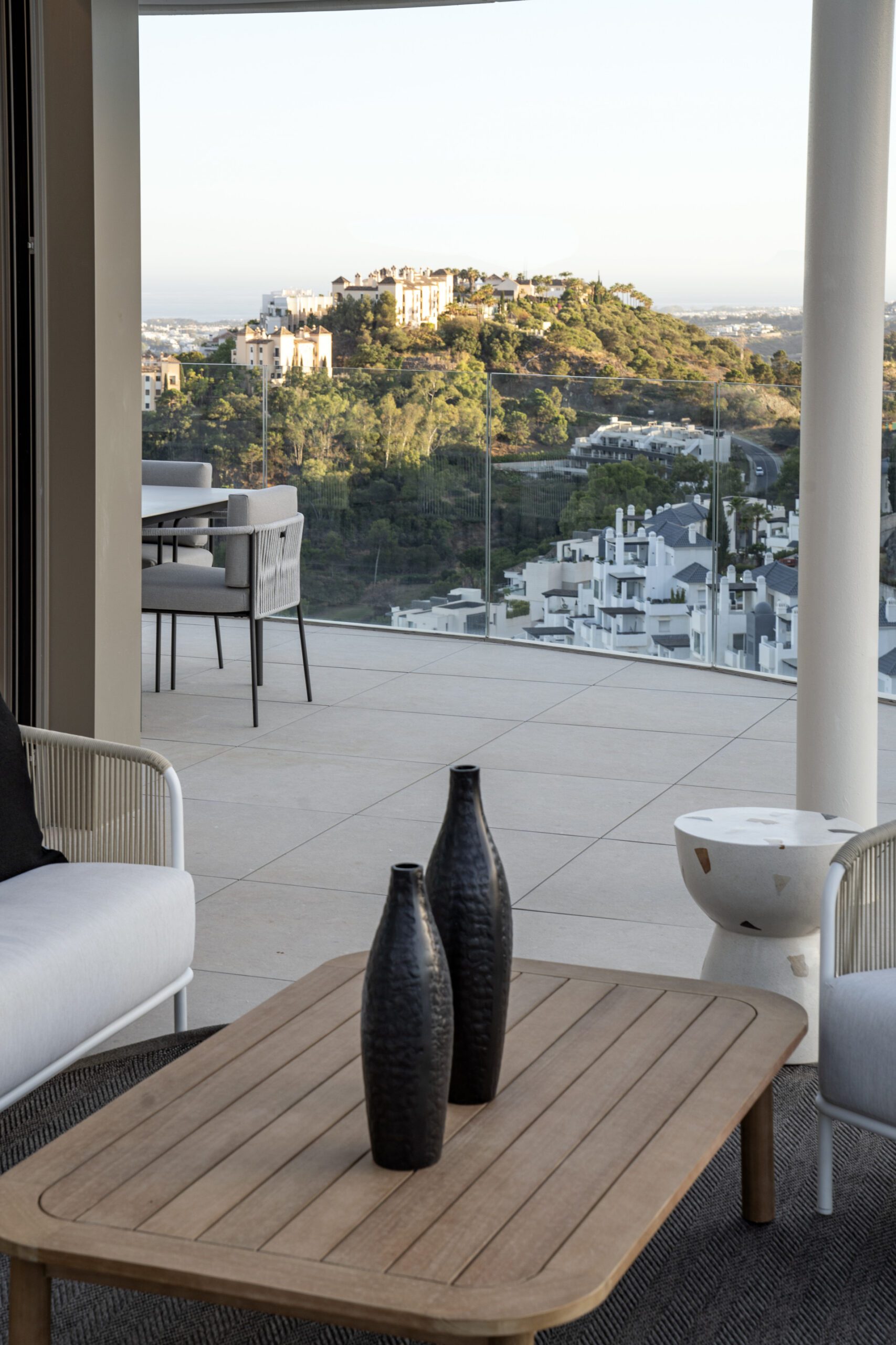 Located in the scenic hills near Benahavís, this prestigious residential complex offers world-class amenities, including a saltwater infinity pool with a Jacuzzi, an outdoor garden gym with a yoga area, petanca courts, a serene chillout zone with a fire pit, and an exclusive conference center. With 24-hour security, residents enjoy the utmost privacy and peace of mind.