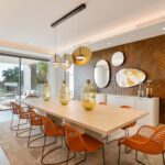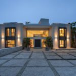 Spanning 958 m² over three floors, the home is introduced by a long private drive leading to a striking glass façade and double-height entrance hall. Inside, a floating staircase guides you to a rooftop solarium, while the main floor offers a formal living room, a 12-seat dining area, a state-of-the-art kitchen with premium appliances and island, plus a second dining space. Additional features on this level include a cozy TV lounge, home office, pantry, guest WC, and an en-suite guest bedroom.