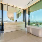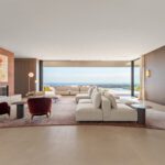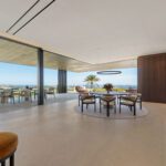 Inside, light floods through floor-to-ceiling windows, framing the spectacular scenery beyond. The main living area offers an elegant lounge with a feature fireplace, seamlessly connecting to the refined dining area and state-of-the-art kitchen. An adjoining outdoor kitchen and terrace create an idyllic setting for entertaining and enjoying the Mediterranean lifestyle. This level also includes two stylish guest suites, each with its own private bathroom.