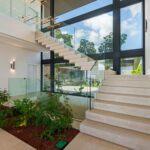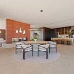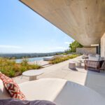A scenic, tree-lined drive through the exclusive El Herrojo Alto gated community leads to a grand entrance that immediately impresses. A spacious driveway reveals a contemporary masterpiece, where clean lines and natural materials blend effortlessly into the surrounding landscape.