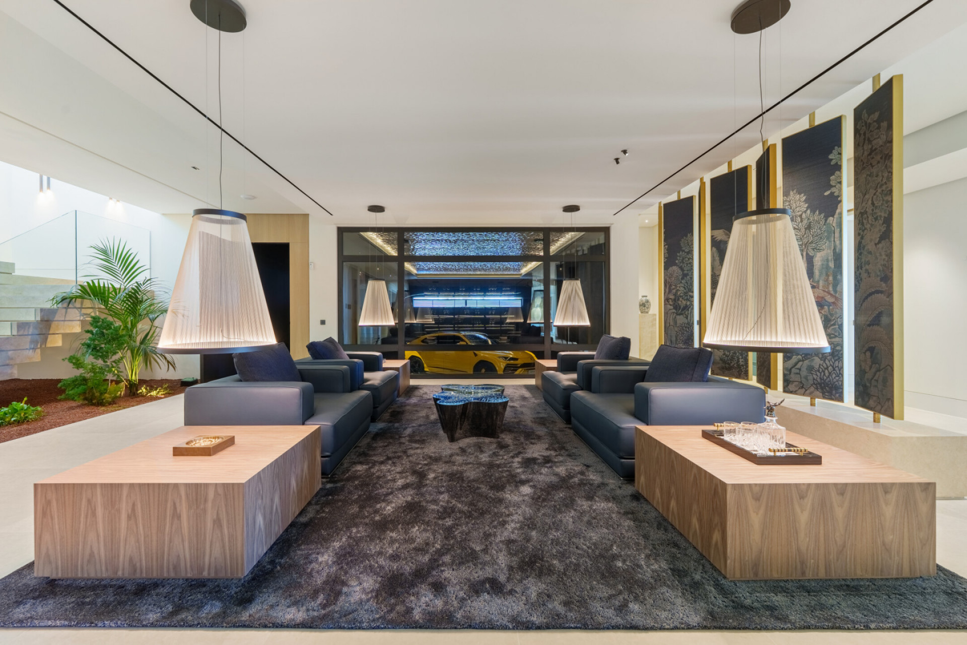 The lower level unfolds nearly 800 m² of light-filled living space, dedicated to leisure and relaxation. Multiple lounges, a cinema room, games area, fully equipped gym, and an indoor spa with heated pool and jacuzzi offer every modern comfort.
